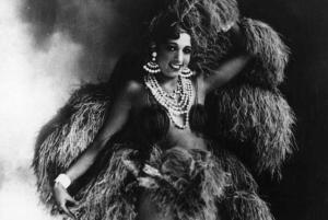 circa 1930: American singer and exotic dancer Josephine Baker (1906 – 1975), of the Parisian Folies Bergere, poses in one of her many elaborate costumes. (Photo by Hulton Archive/Getty Images)